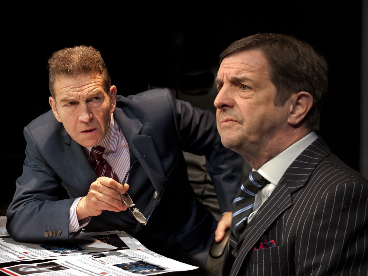 “An eye-wateringly funny — and foreboding — vision of British print journalism going to hell in a handcart … Higgins’s performance is pitch-perfect … Hicks is on storming form and having a ball … Highly recommended.”